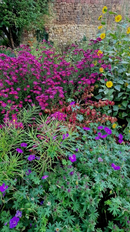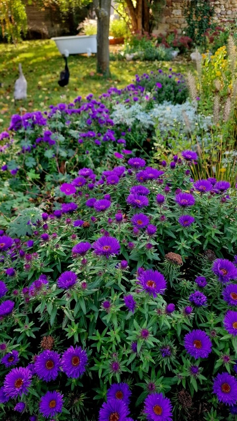 In unserem Grundstück heißt es allerdings an einigen Stellen : wuchern erwünscht ! Was täte ich ohne Aster Ageratoides, oder Beinwell, Straußenfarn oder Taubnesseln … sie alle helfen dazu, den Unkrautbewuchs in den Randbereichen unseres sehr großen ländlichen Grundstücks in Zaum zu halten. Aster Ageratoides überrollt sogar Quecke und Brennnesseln und blüht bis zum Frost.