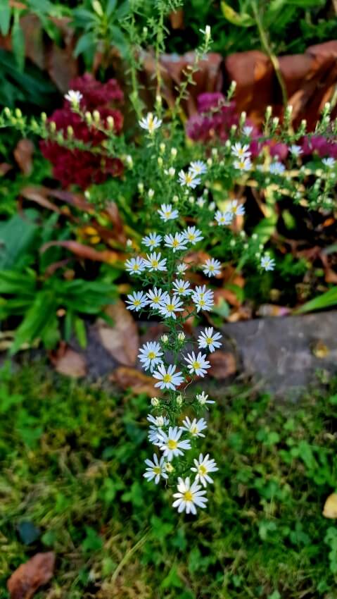 Es gibt aber noch mehr Astern, die zahm im Beet sind. Sie werden bisher viel zu selten in Gärten und Beeten gepflanzt. Ich habe alle davon und ich liebe sie. Sie sind robust und blühen teilweise im trockenen Schatten oder bis in den November hinein. Dazu gehört bspw. die Aster x frikartii ‚Mönch‘ (ein Traum!), ebenso die Aster cordifolius ‚Ideal‘ (Schleier-Aster), die Aster divaricatus, die Aster ericoides (Myrten-Aster), die Aster laevis (Glatte Aster) und die Aster lateriflorus var. horizontalis (Waagerechte Herbst-Aster).